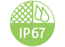 Denotes complete protection against dust ingress and immersion in water up to 1 meter for 30 minutes.
